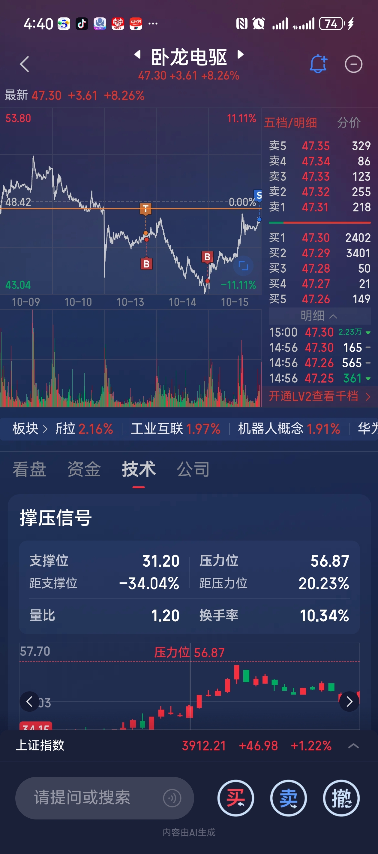 $卧龙电驱(SH600580)$ T了,明天应该能接回来
