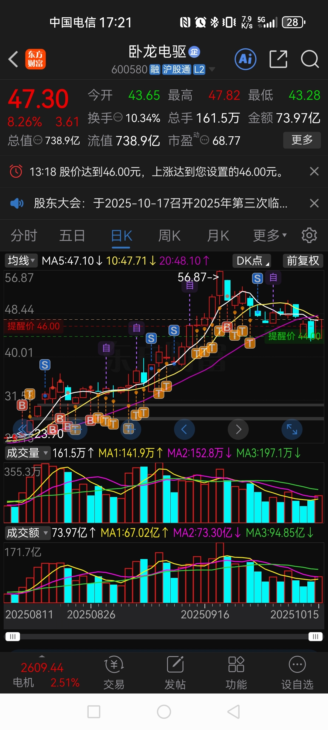 $卧龙电驱(SH600580)$ 回调结束了,我还没有上车呀,最近亏的很严重,还是要靠卧龙来回血