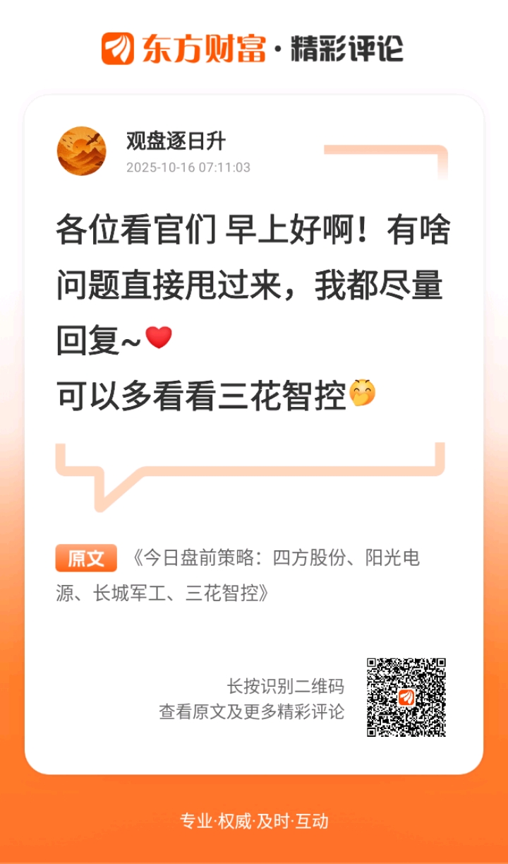 $卧龙电驱(SH600580)$$四方股份(SH601126)$//@观盘逐日升 :各位看官们 早上好啊!有啥问题直接甩过来,我都尽量回复~可以多看看三花智控