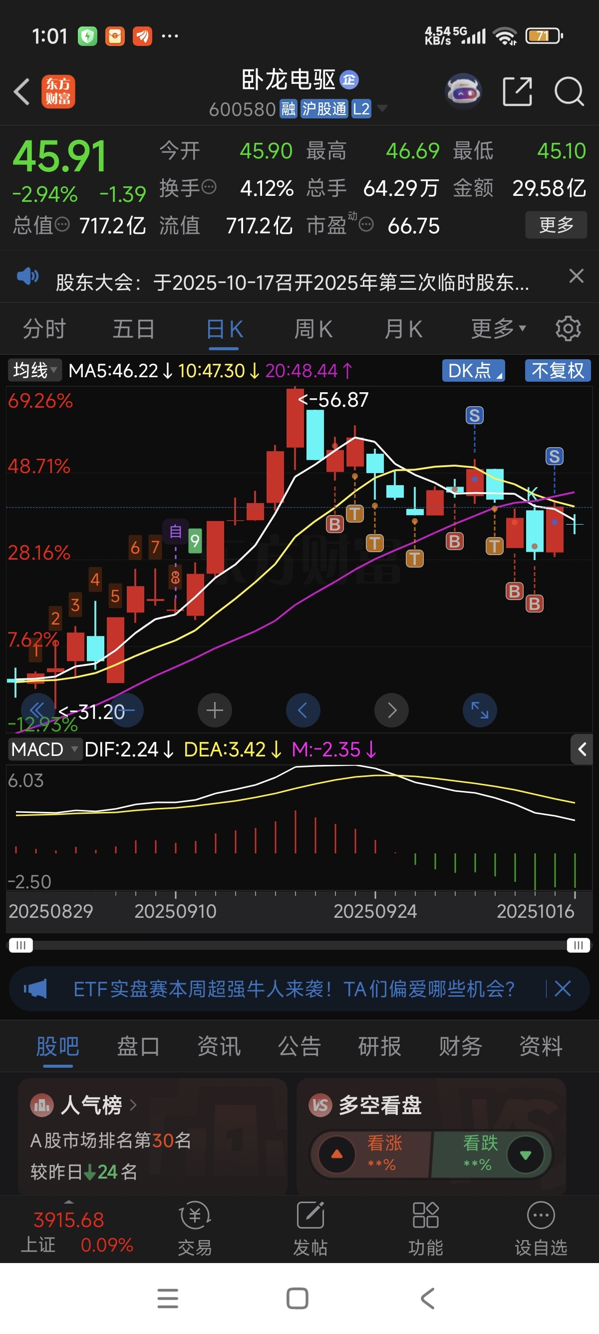 计划今天在44元附近回补好做t,你却偏偏不到这儿,好吧,底仓我就持有看你是要涨上
