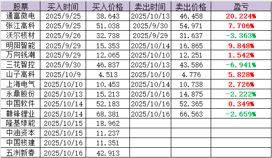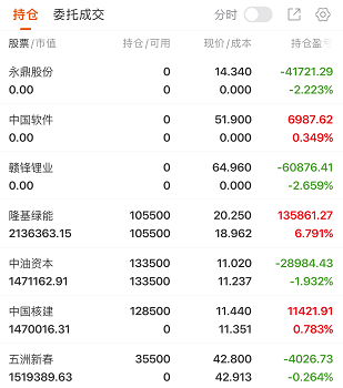操作上,调出永鼎股份、中国软件、卧龙电驱、赣锋锂业,新增中国核建、五洲新春,继续持有隆基绿能、中油资本。