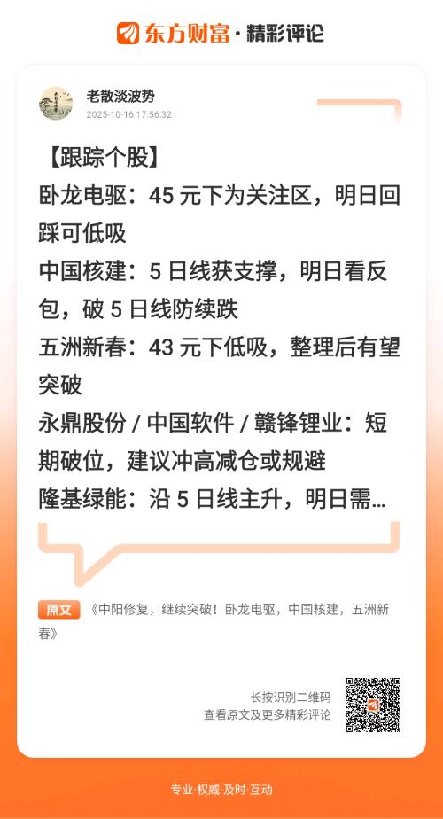 可看回早评 2025年10月16日 01:32 可点 >>> 避险情绪升温,哪个方聚焦估值修复!五洲新春 / 隆基绿能等向将率先逆袭?隆基绿能,中油资本,长城军工