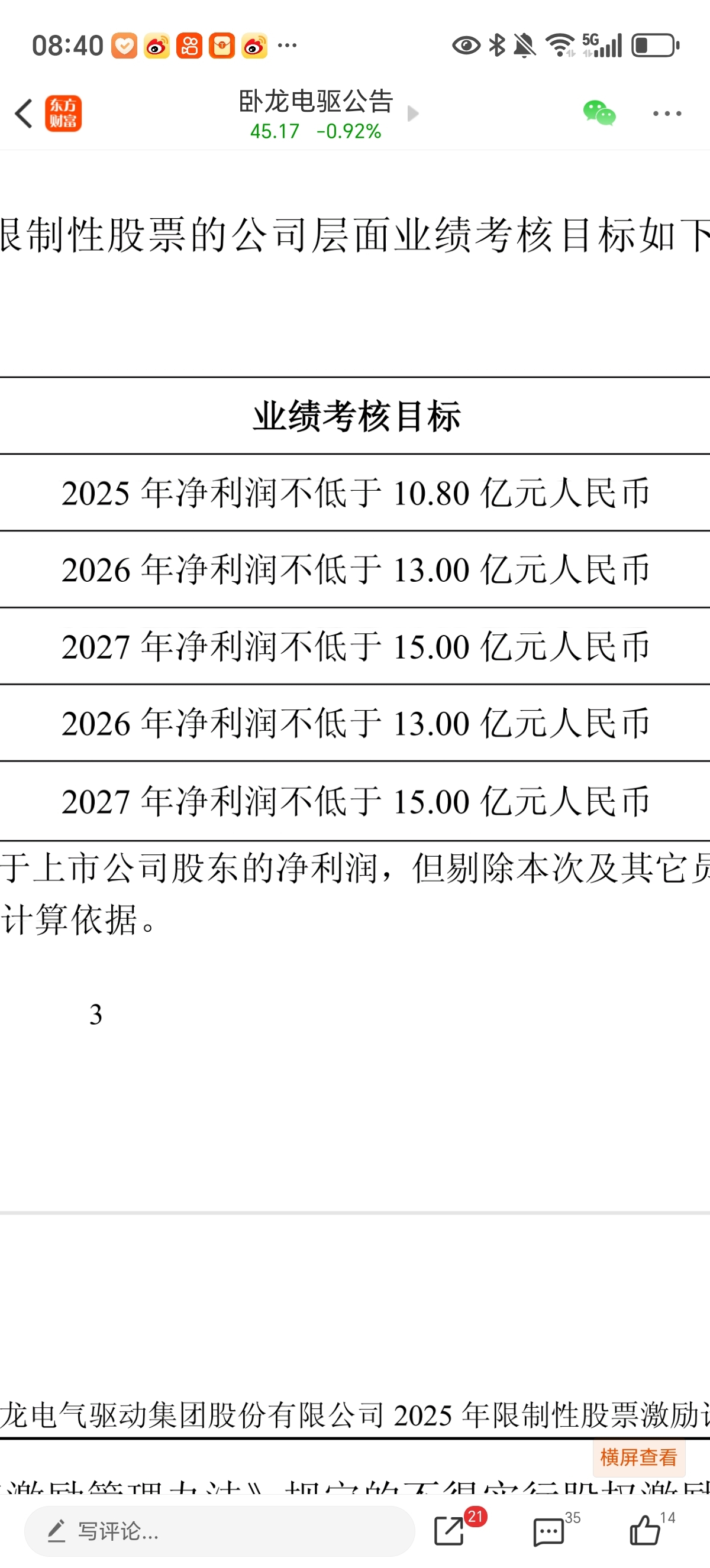 $卧龙电驱(SH600580)$ 股权激励计划昨天全体股民投票,我投了赞成,今年净利润不低于10.8亿,股权激励计划将强力刺激全体卧龙员工努力冲刺今年业绩目标。持续看好,未来可期。