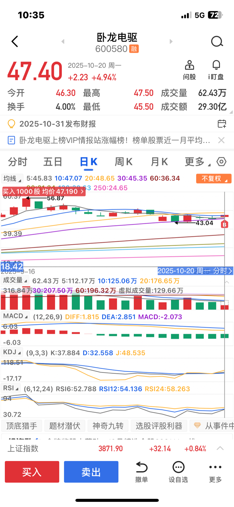 $卧龙电驱(SH600580)$ 买一千玩玩,看能不能赚个水果钱!