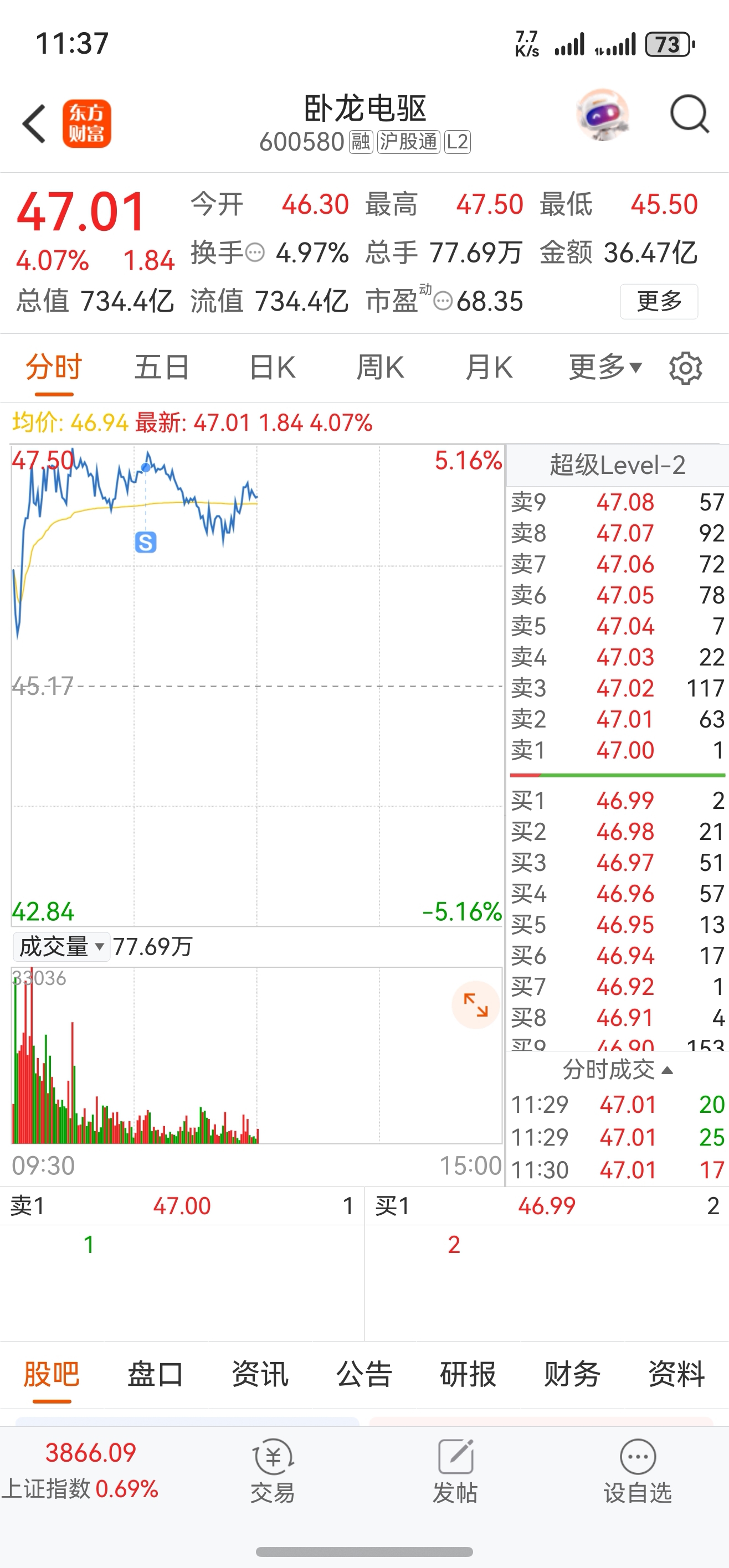 $卧龙电驱(SH600580)$ 跟风三花,三花不上板。我怕怕,先出来观望。留下的发财