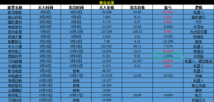卧龙电驱600580:公司是机器人概念股,上周五虽然因为大盘的影响破了下方五日和十日线的支撑,但是在周一题材出现回暖的情况之下,卧龙电驱阳线也是强势反包。现在股价重新来到了五日和十日线的上方,短中期趋势都开始转强,十月份对他还是比较有信心的,不破下方五日线的支撑还是值得继续格局。