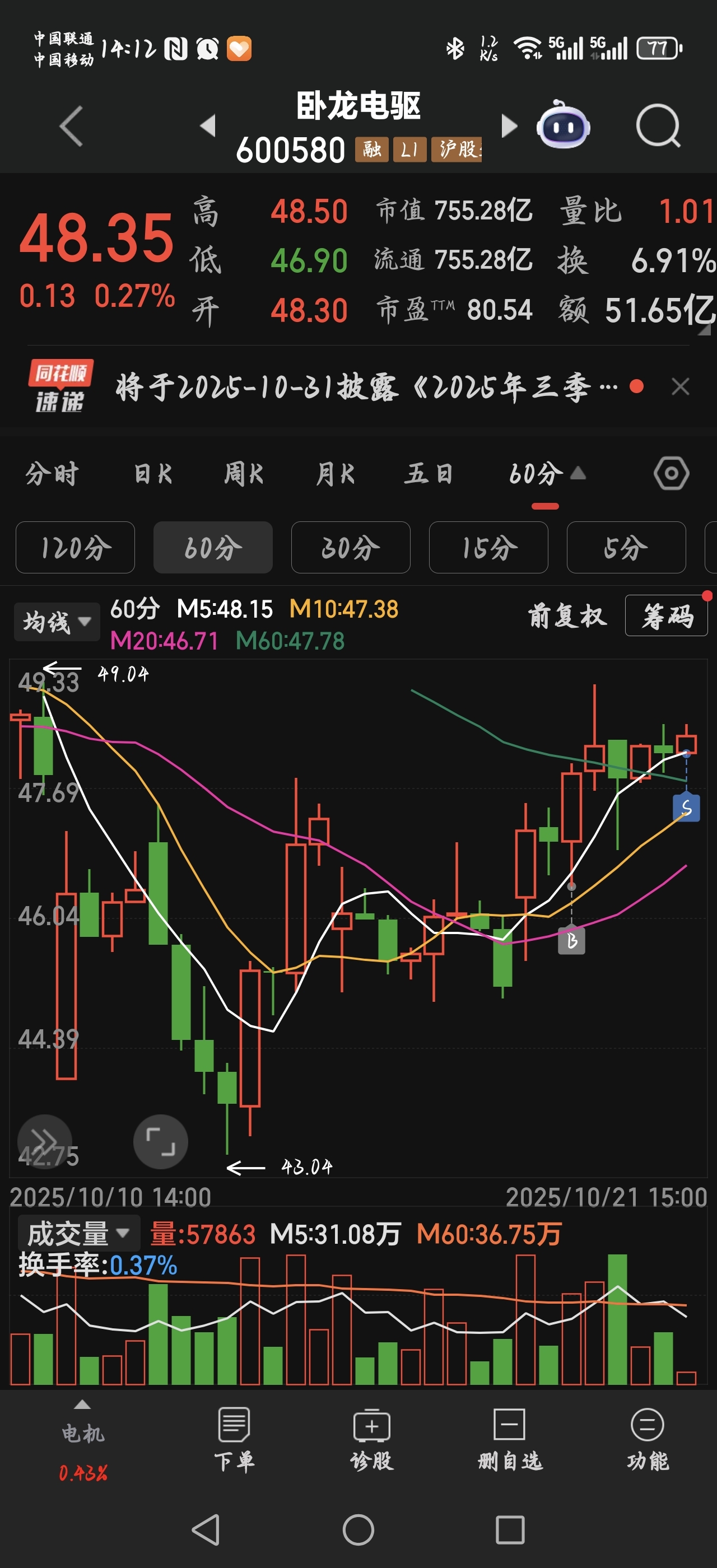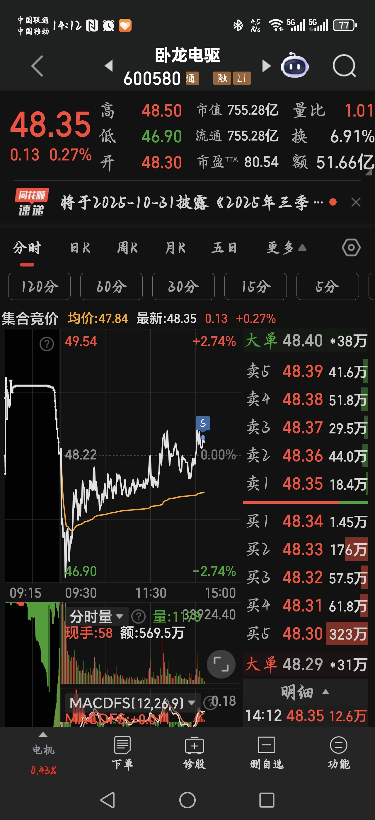 $卧龙电驱(SH600580)$ 大家预期不一样,抄作业的,喜欢做趋势的就留下,师傅选择获利了结,已经减大部分仓位,尾盘可能考虑清仓,喝口汤也不错的!
