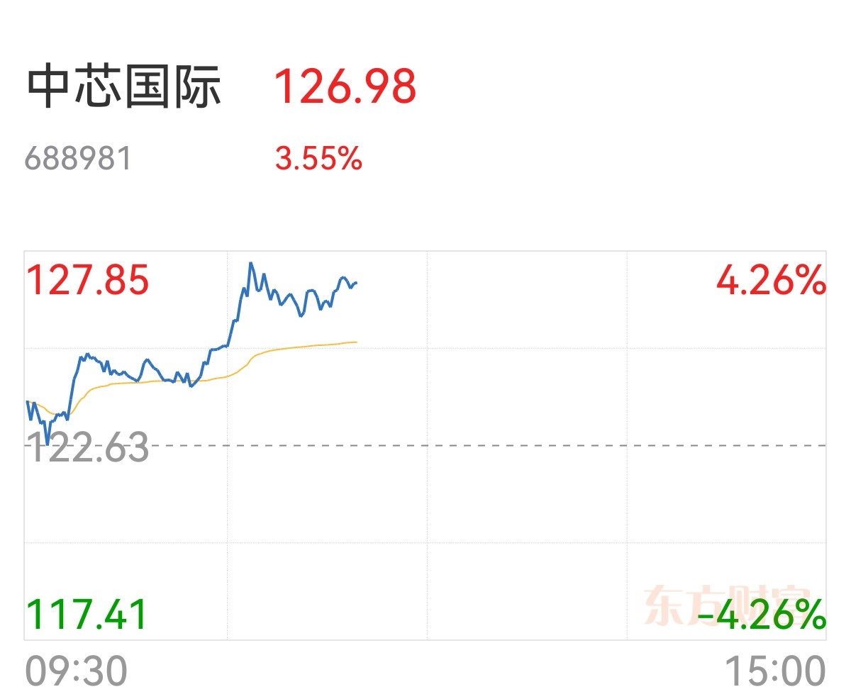 中芯国际大幅拉升,一度涨超4%,最高到127.8,基本到达目标价位128~130,看来压力位有些压力。