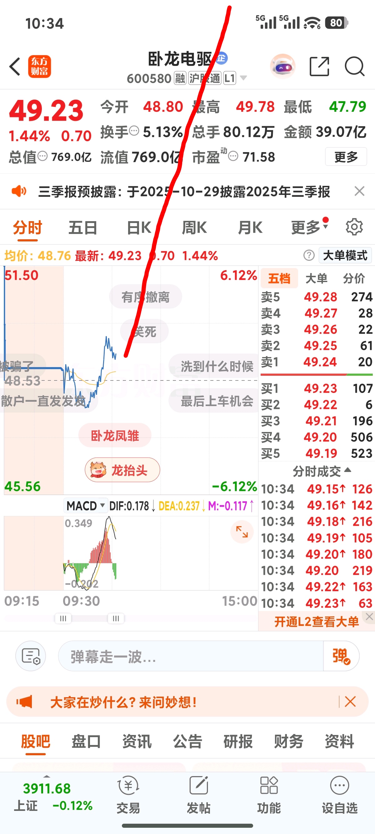 $卧龙电驱(SH600580)$ 已经给大家预测好了,坐等涨吧