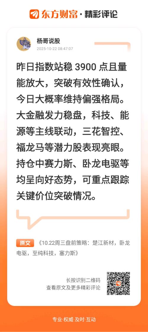 3900点的站稳为市场打开了新的修复空间,昨日成交量的同步放大,进一步确认了突破的有效性。从市场情绪看,空头力量已明显减弱,多数个股呈现积极态势。尽管短期可能面临获利盘了结带来的震荡,但市场回暖的支撑下,今日市场仍将维持偏强格局,震荡整理后有望再度向上试探。