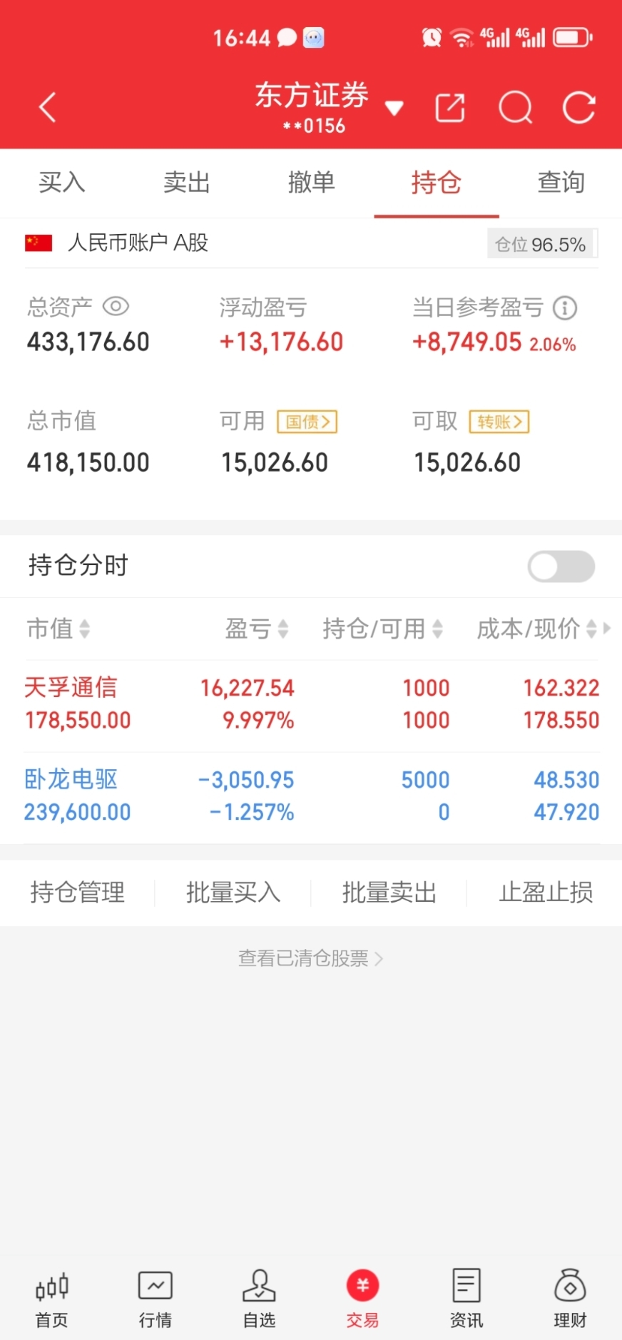 记录每一天30万炒家(第62天)目前43今天新建卧龙电驱其它不变:个人分享仅供参