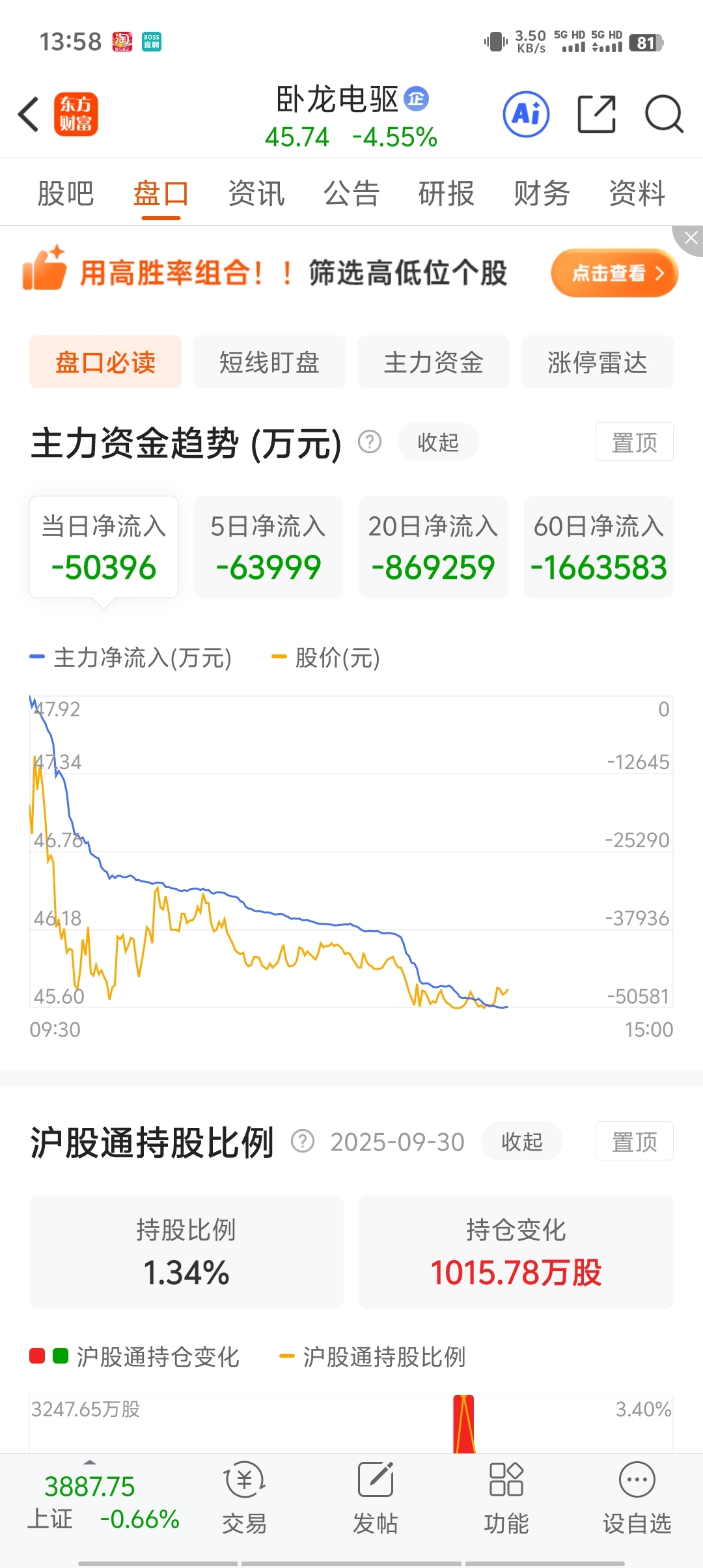 $卧龙电驱(SH600580)$ 天天主力都在大量撤离,玩个鬼。