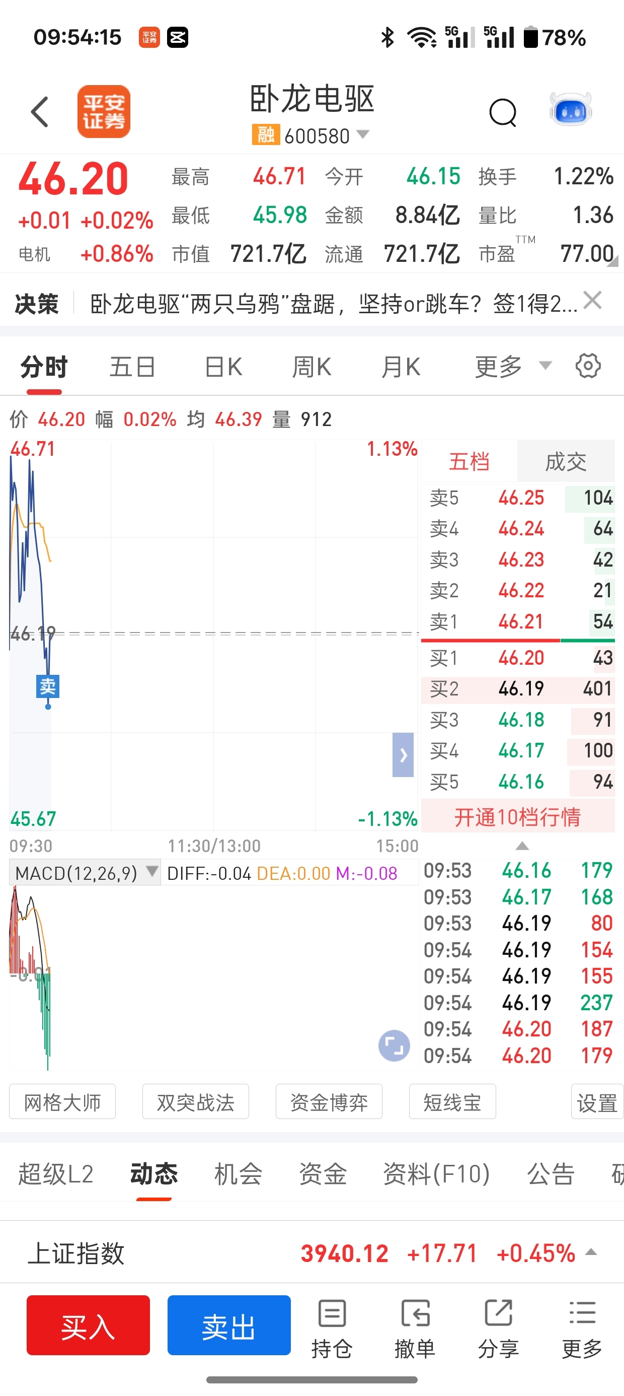 $卧龙电驱(SH600580)$ 很好,割了就涨了