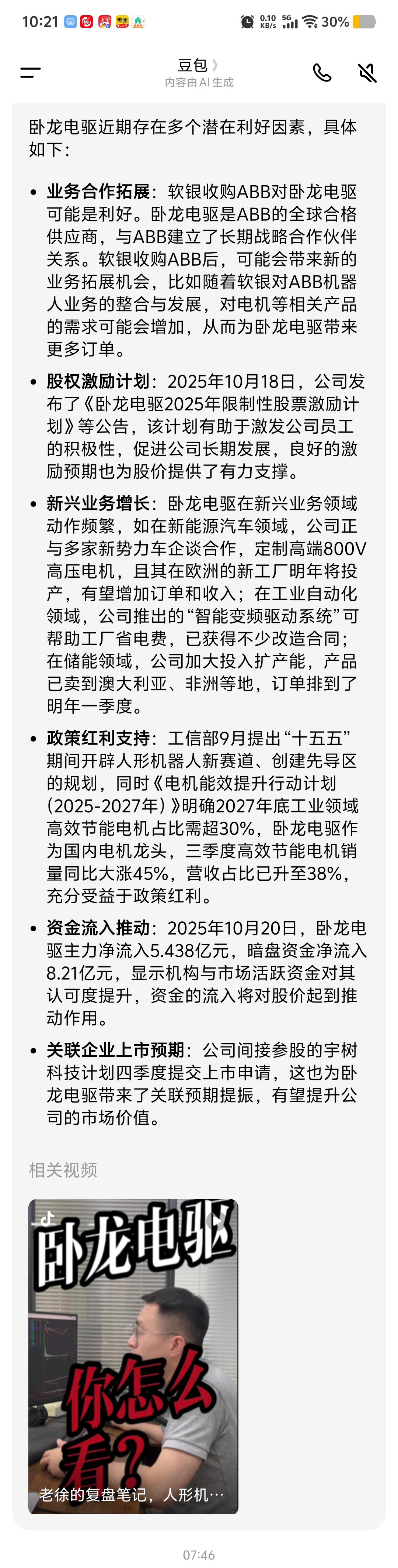 $卧龙电驱(SH600580)$ 我持有,我找到了利好消息,让我坚定信心持有赚钱。