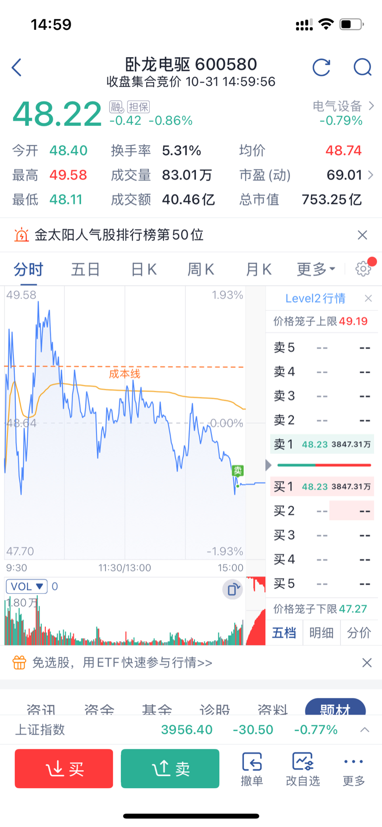$卧龙电驱(SH600580)$ 卖了卖了,磨的受不了啦,在的兄弟们发财
