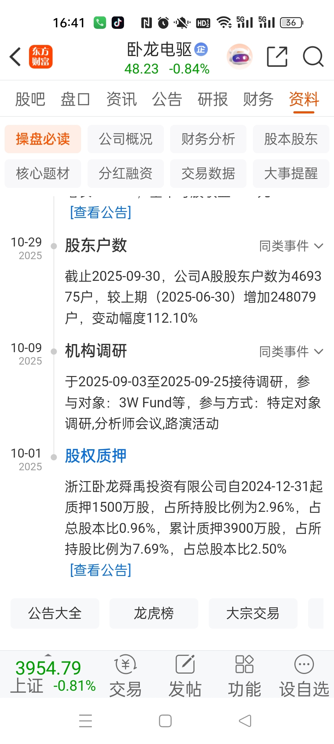 $卧龙电驱(SH600580)$ 被散户占领了!增加24万户数!