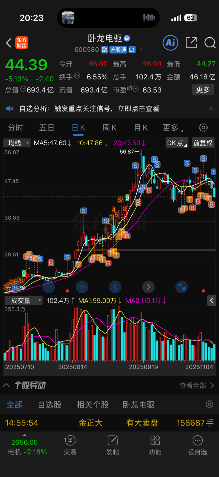 $卧龙电驱(SH600580)$ 等你再下来接我