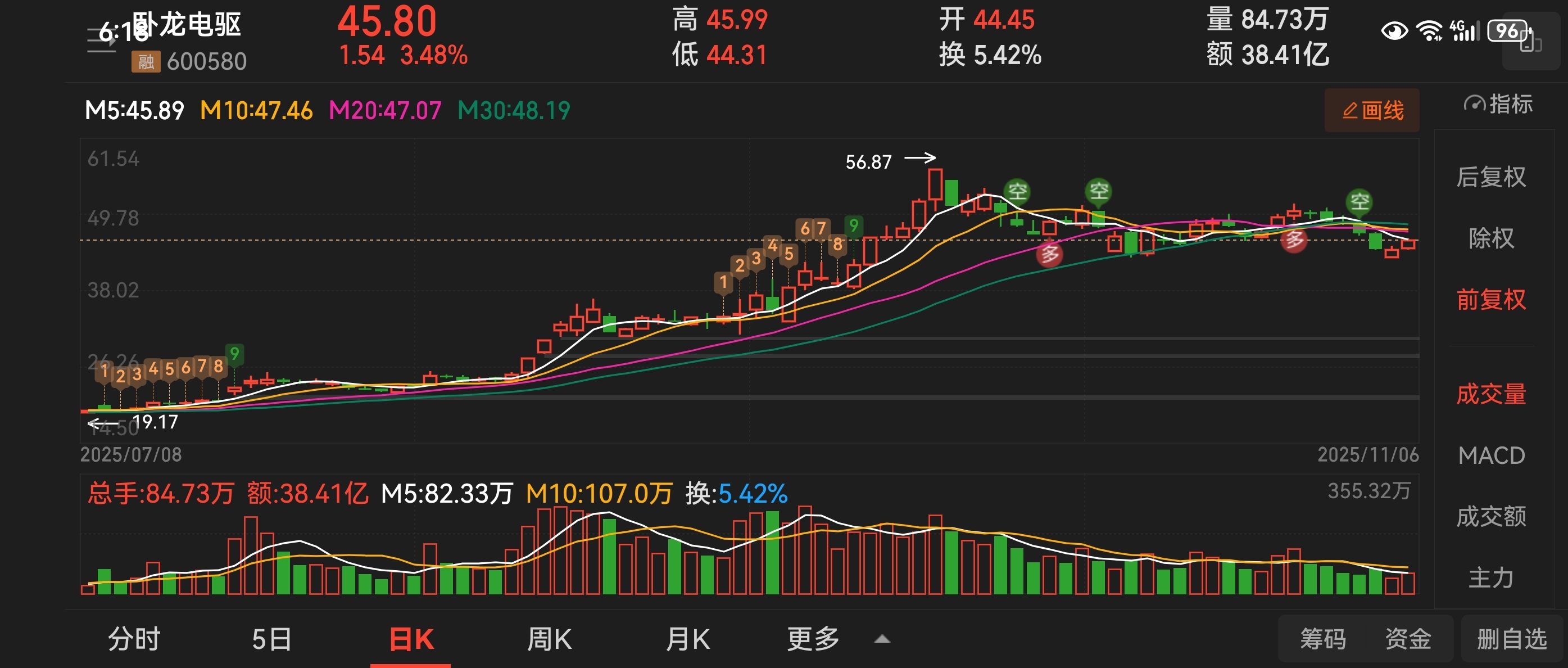 $卧龙电驱(SH600580)$ 卧龙调整到五日线边缘,叠加主力资金介入问题不大!后续看反弹力度
