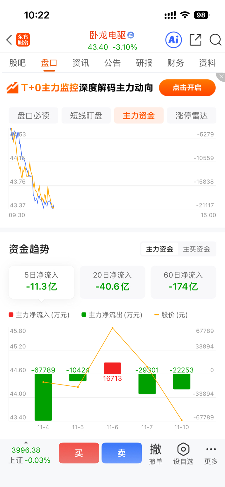 $卧龙电驱(SH600580)$ 近两个月资金持续流出174个亿,已经无力回天了