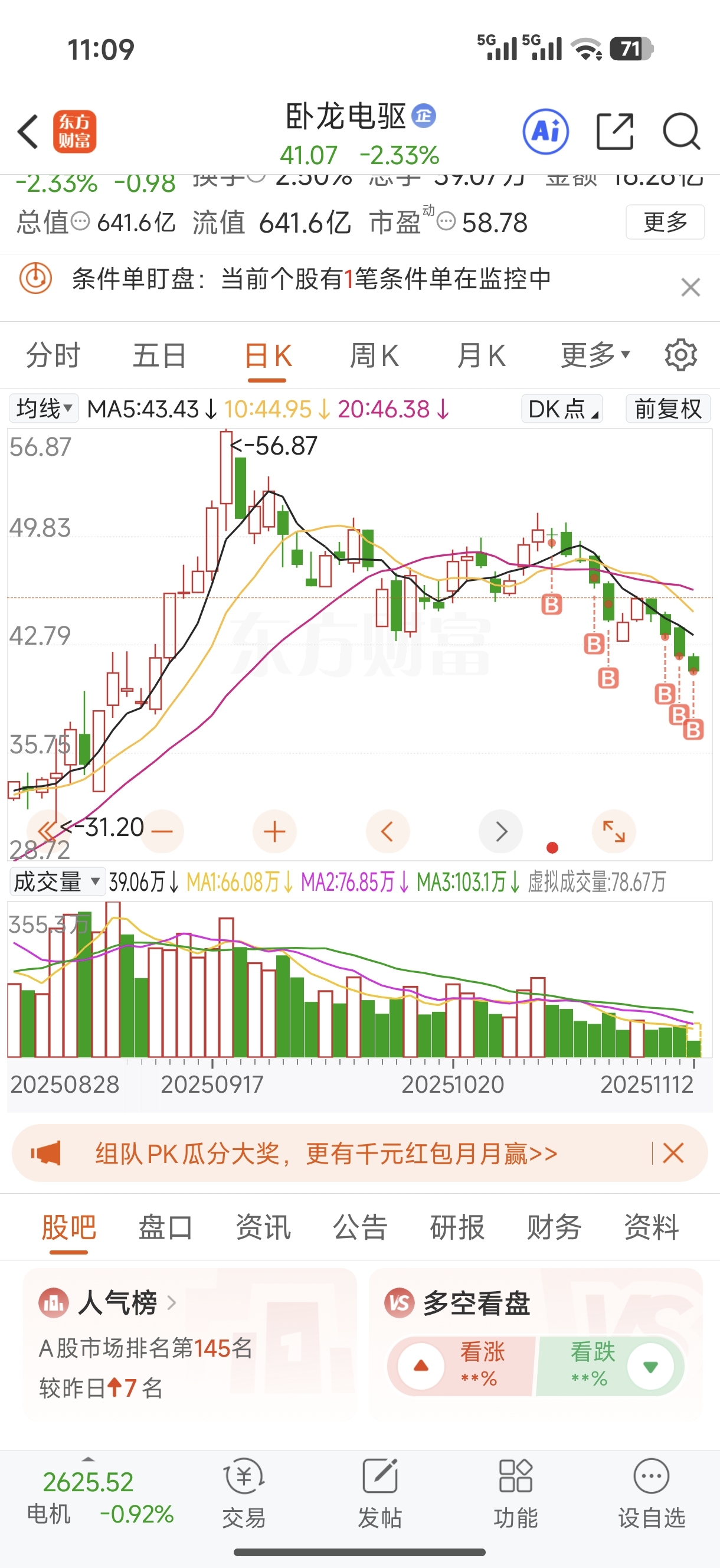 $卧龙电驱(SH600580)$ 我补不动了。在不反弹只能卸载了