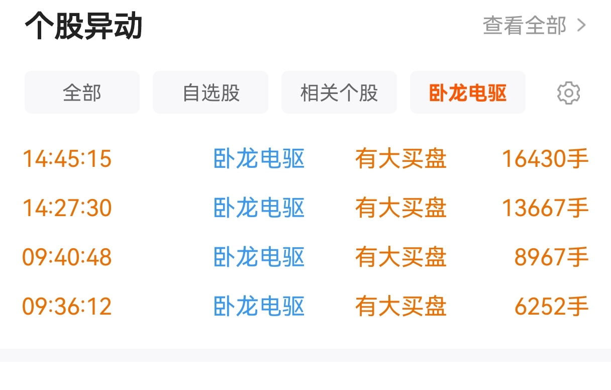 $卧龙电驱(SH600580)$ 主力在偷偷建仓