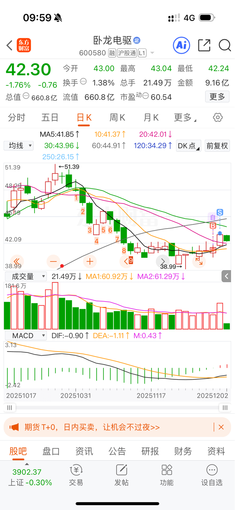 $卧龙电驱(SH600580)$ 再跌我又进来
