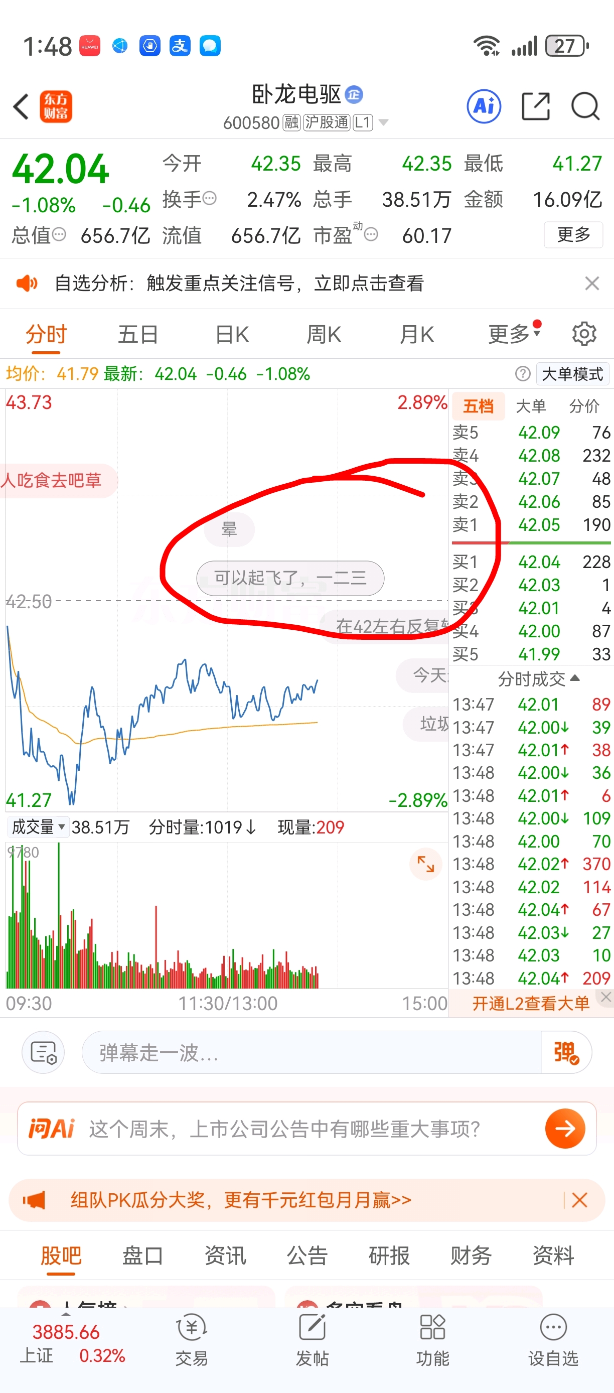 $卧龙电驱(SH600580)$ 感觉要起飞的感觉,是错觉吗?