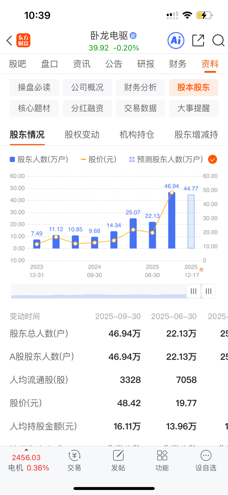 $卧龙电驱(SH600580)$ 高位的时候,抖音疯狂吹,散户疯狂接盘。1个月增加了20多万股东,散户还想着机构拉上去给他们解套