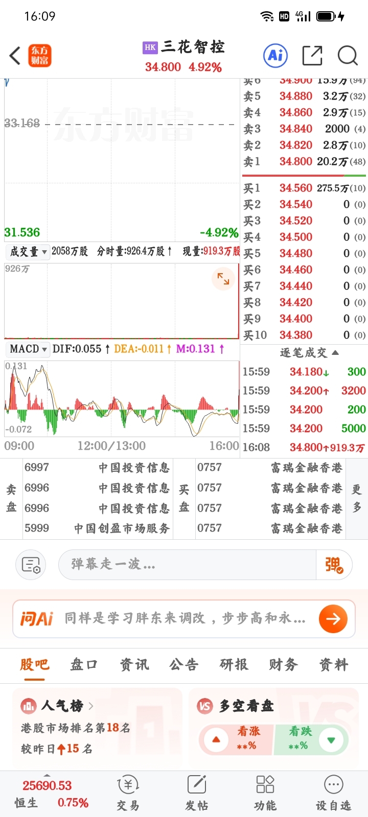 温馨提示: 1.根据《证券法》规定,禁止编造、传播虚假信息或者误导性信息,扰乱证券市场;2.用户在本社区发表的所有资料、言论等仅代表个人观点,与本网站立场无关,不对您构成任何投资建议。用户应基于自己的独立判断,自行决定证券投资并承担相应风险。《东方财富社区管理规定》