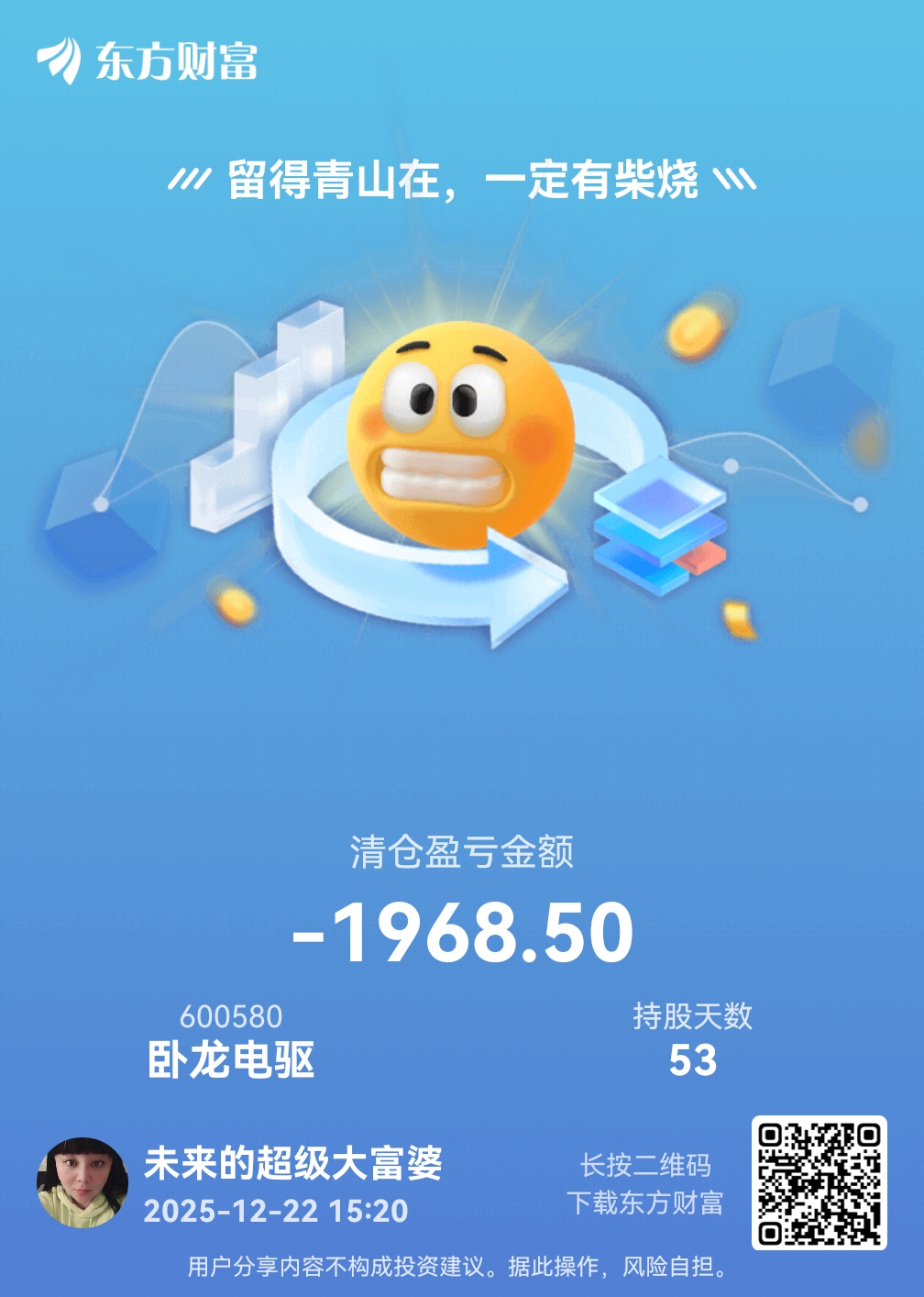 $卧龙电驱(SH600580)$ 割了,影响我过节心情