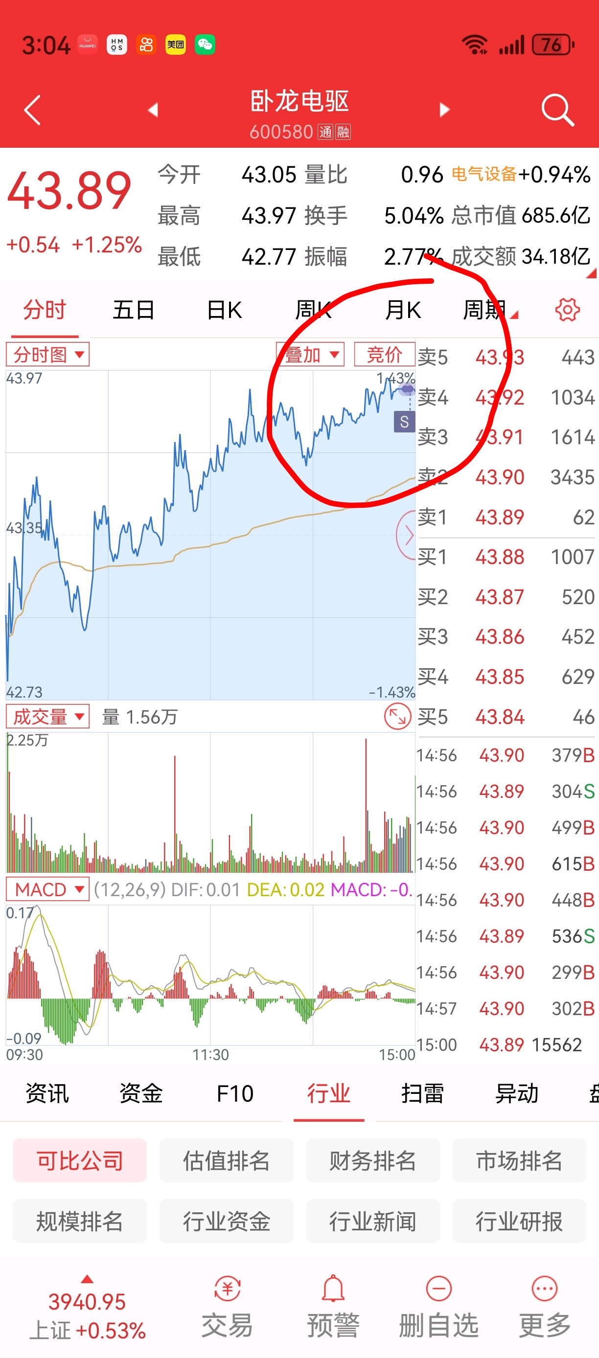 $卧龙电驱(SH600580)$ 盘尾出来一半,上可攻,下可守。明天敢跌下来就买进去做个小T。涨上去我就不操作了。反正还有一半在里面。目前盈利2%多点