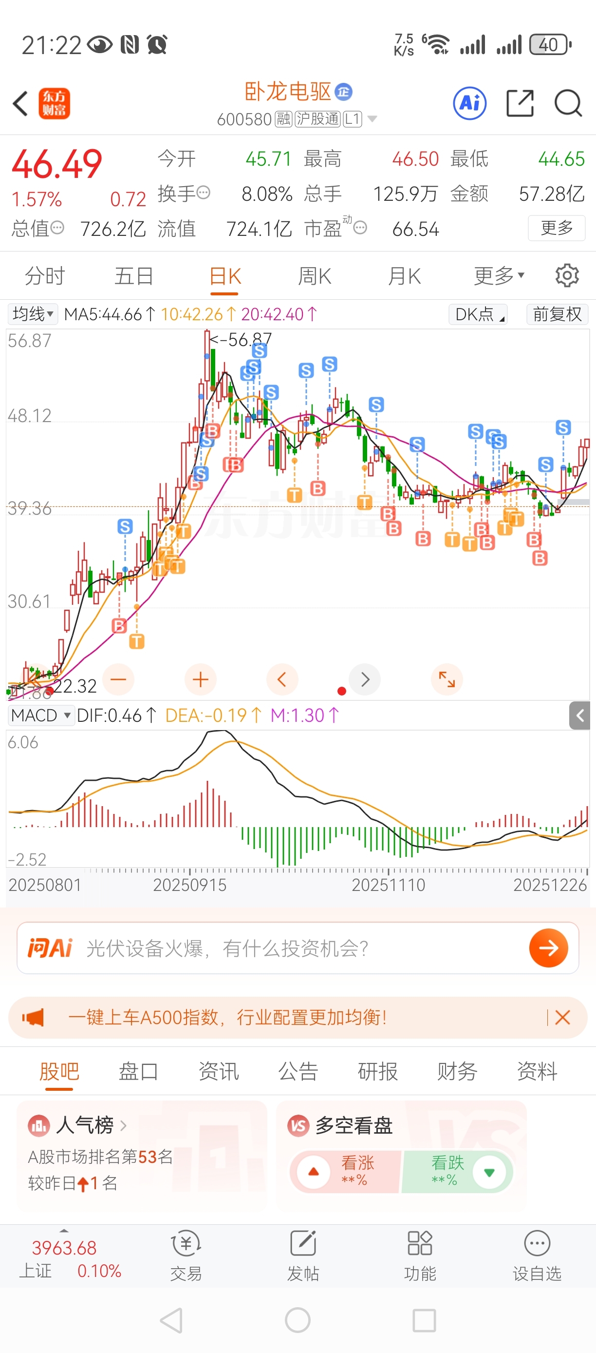 $卧龙电驱(SH600580)$ 就做一只就行。