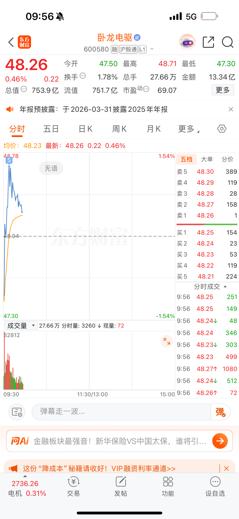 $卧龙电驱(SH600580)$ 早就把你拿捏的死死的