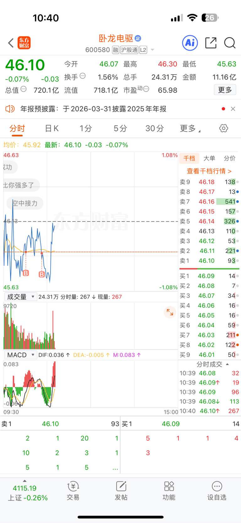 $卧龙电驱(SH600580)$ 买这个从来没让我亏过,我希望这次也别让我失望