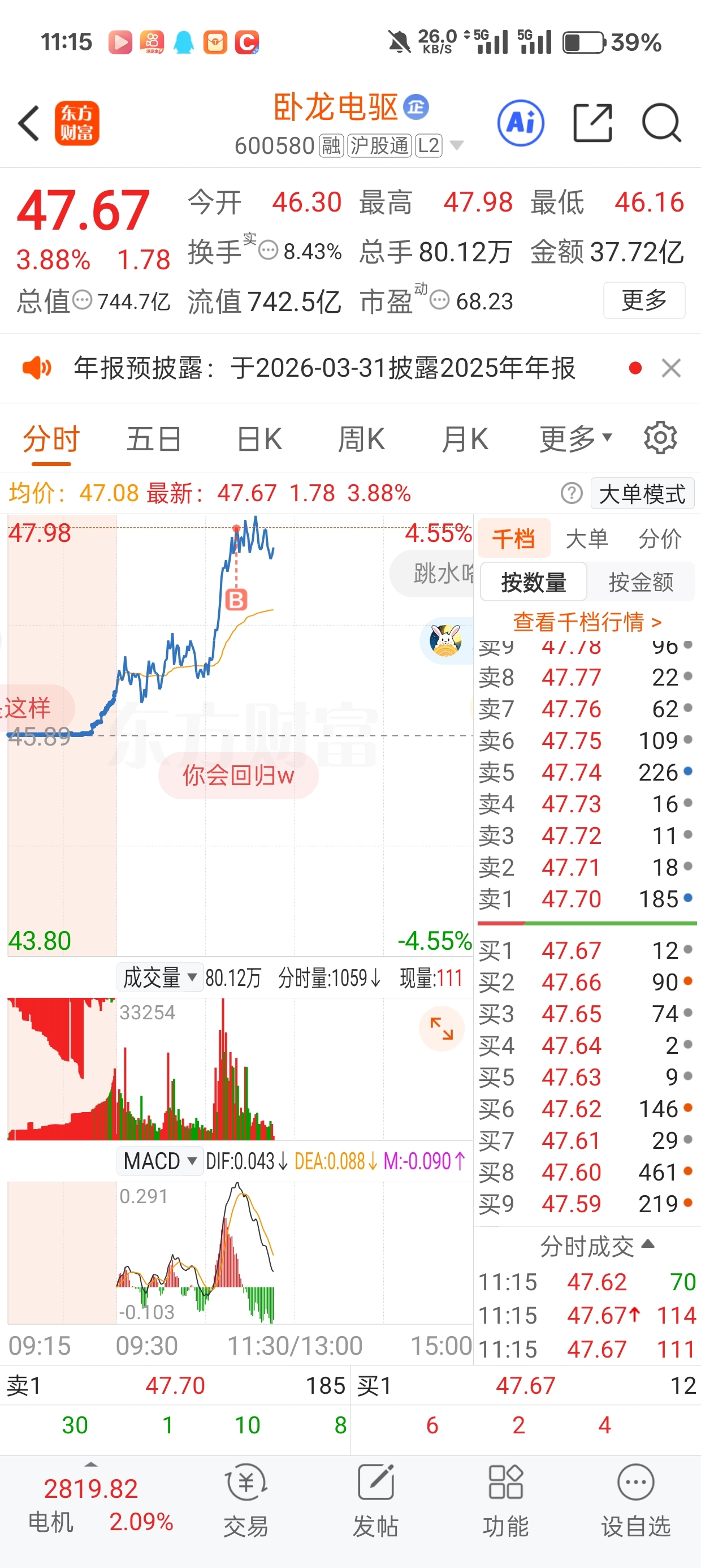 $卧龙电驱(SH600580)$ 对不起大家,我买崩的