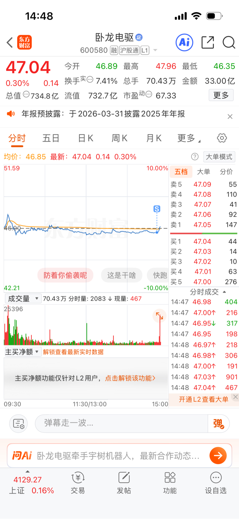 $卧龙电驱(SH600580)$ 我略微一动手,就可以操控一下
