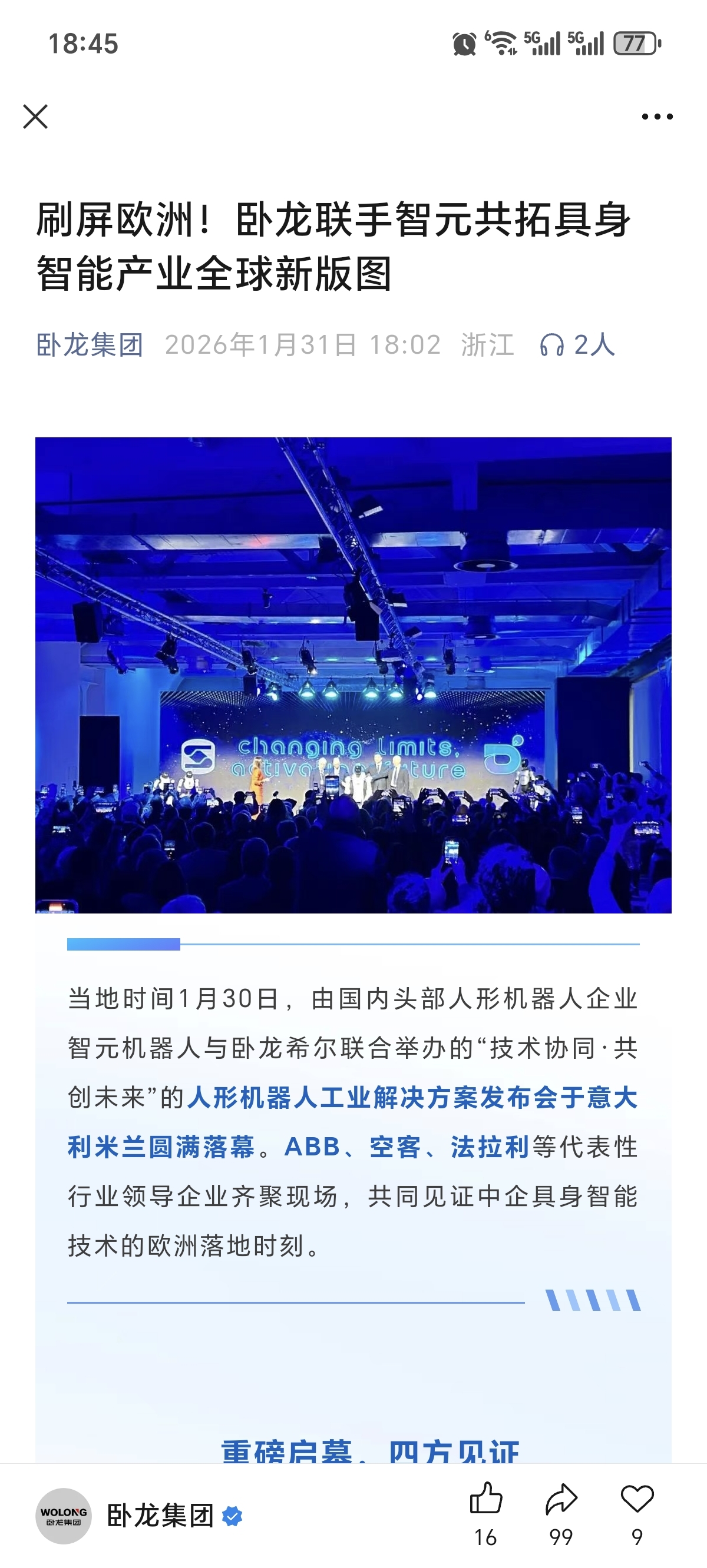 $卧龙电驱(SH600580)$ 高度绑定智元啊这是