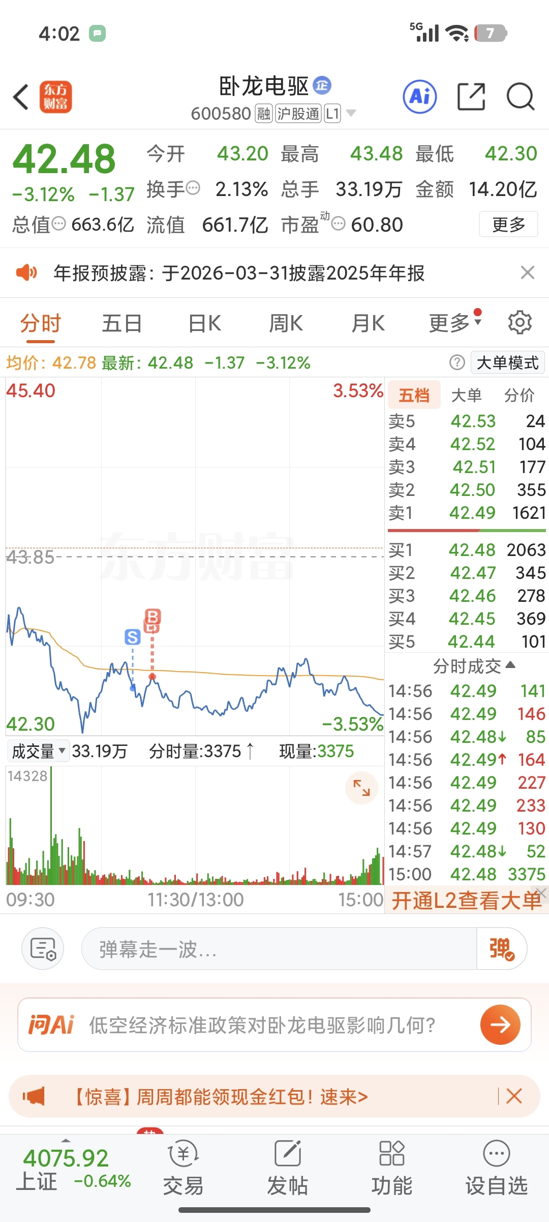 $卧龙电驱(SH600580)$ 大家好,这是sb战法