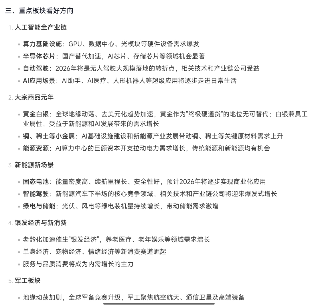 2026年的重点看好方向,仅供参考学习