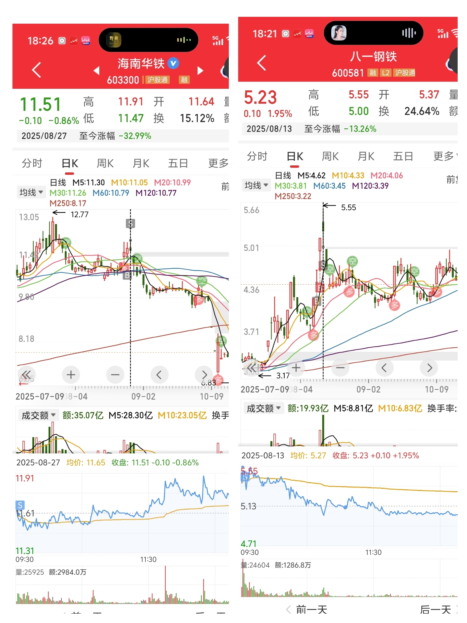 $八一钢铁(SH600581)$ 两只都是周末黑天鹅,都是提前跑路,且逃顶成功的,这要说没列祖列宗保佑我是信不了一点点