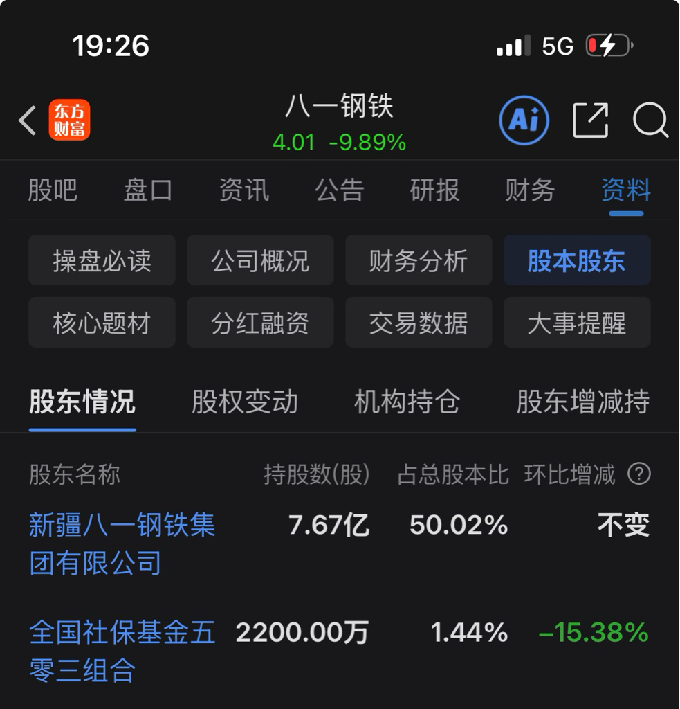 $八一钢铁(SH600581)$ 社保基金提前知晓利空,一直再减持