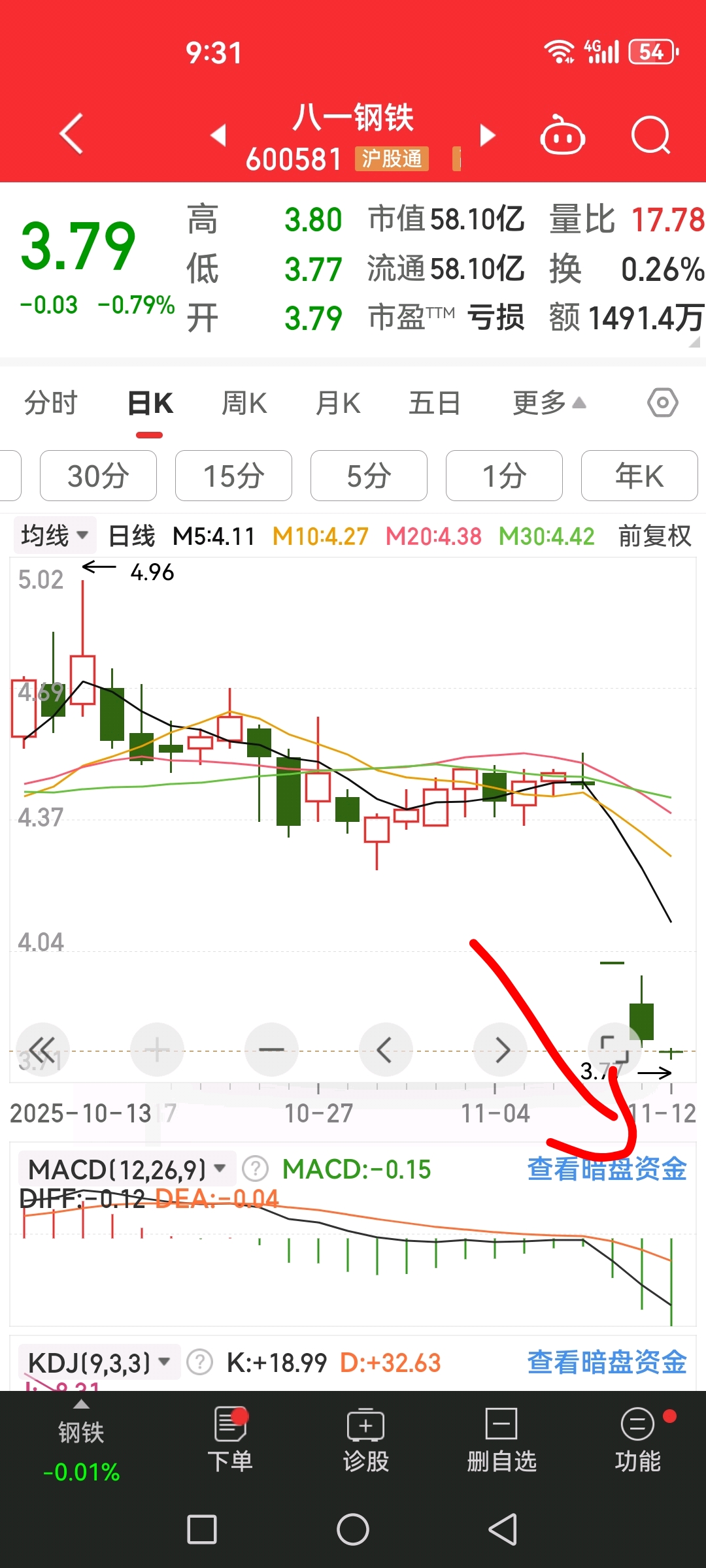 $八一钢铁(SH600581)$ 低开低走赶紧跑