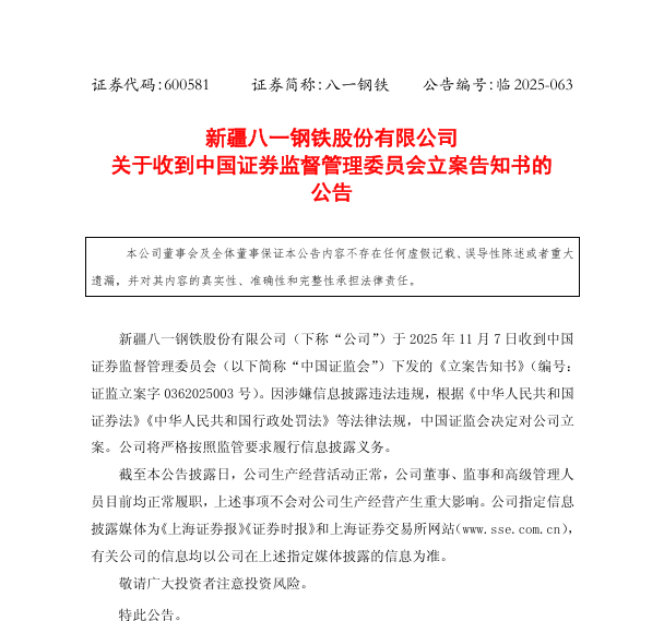 八一钢铁索赔时间范围为:2025年11月8日之前买入且持有股票的投资者,具体条件如下: