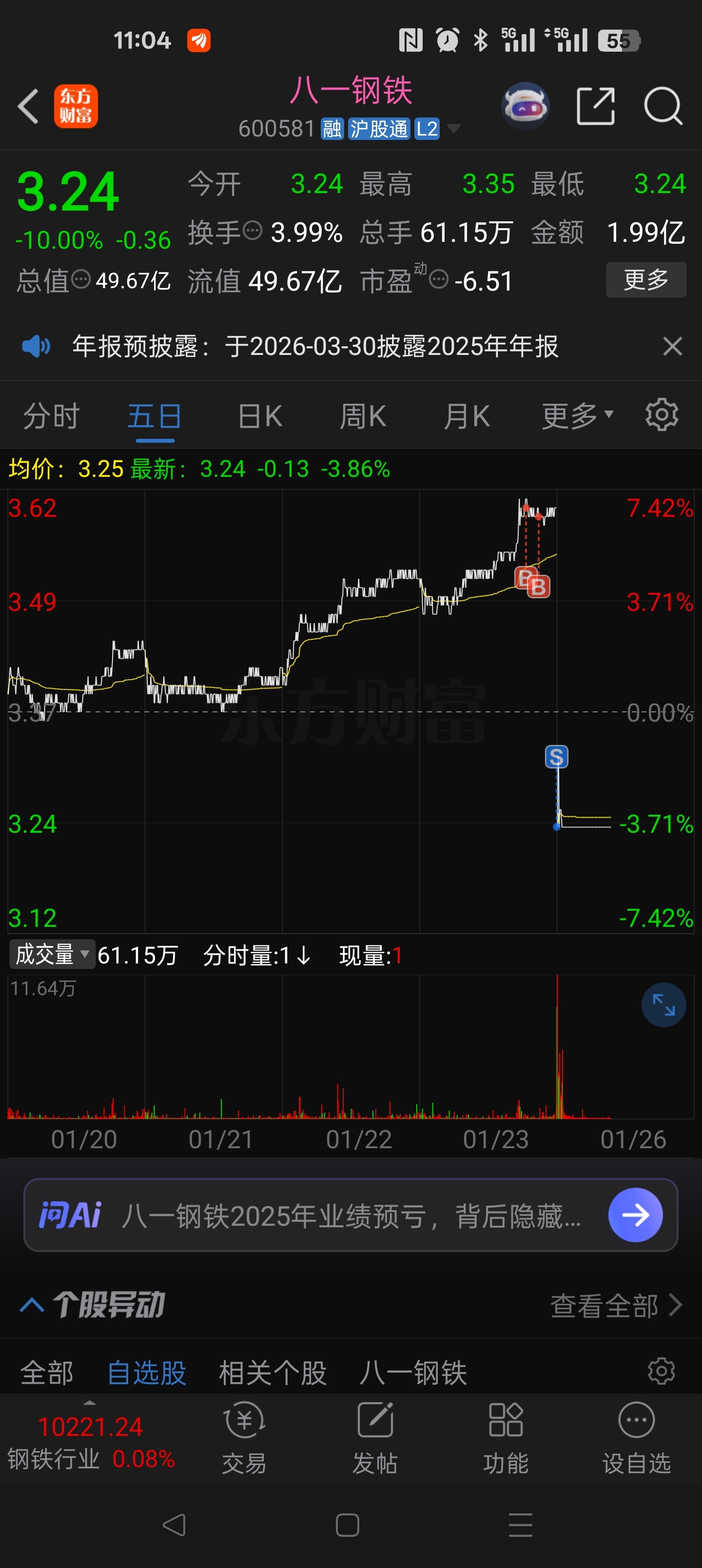 $八一钢铁(SH600581)$ 真恶心,刚买就中