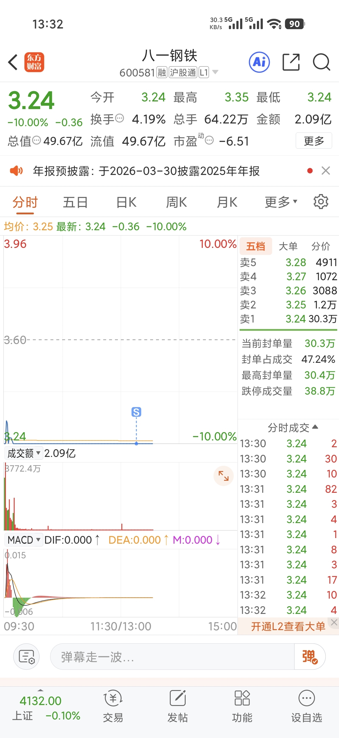 $八一钢铁(SH600581)$ 出来了,150手,感谢不杀之恩,鼠鼠去铜陵有色了
