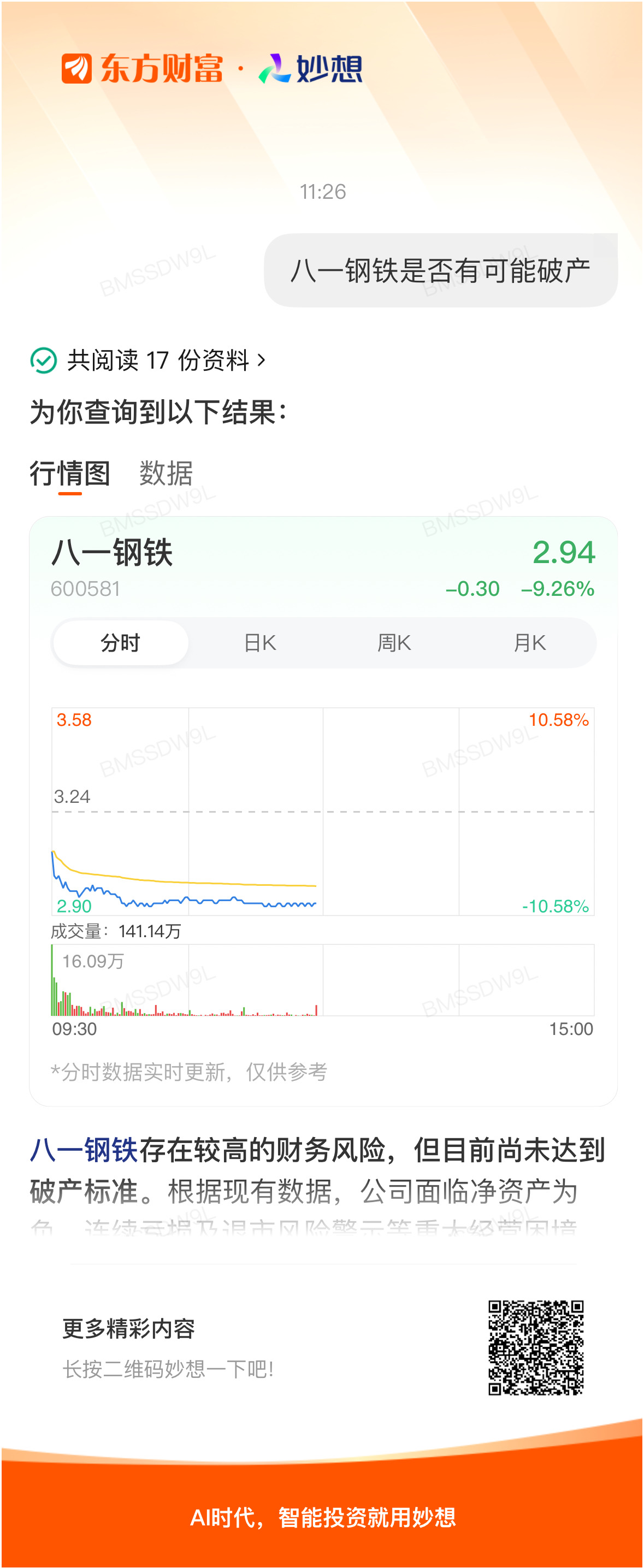 #@妙想,你怎么看?# 妙想一下:八一钢铁是否有可能破产