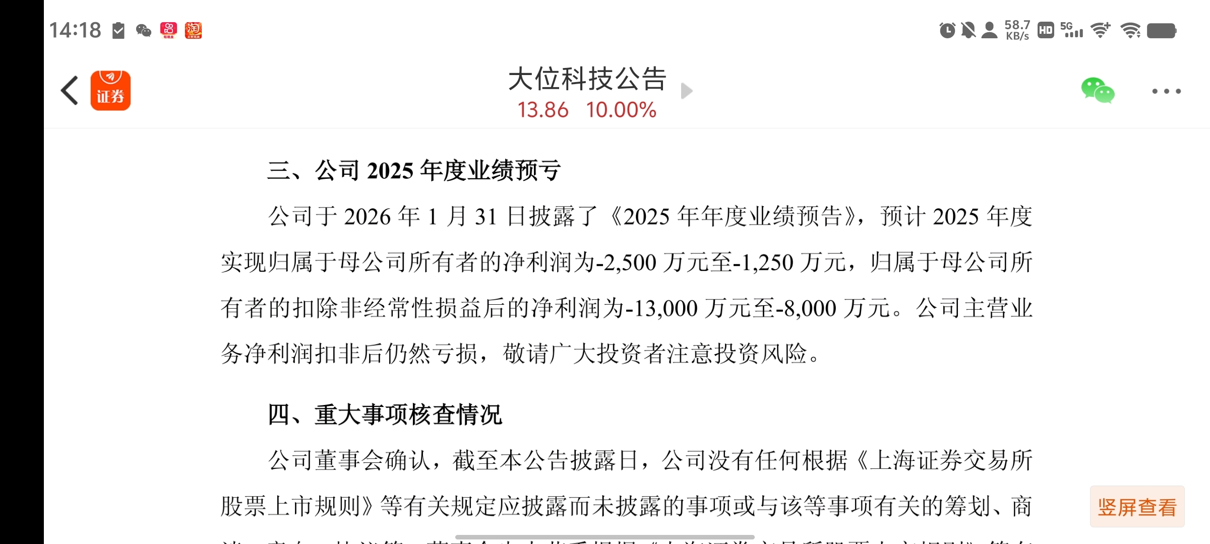 果然一只票涨跌还是跟公告有关大位科技连亏了6年没有说可能被st所以有资金看好它,