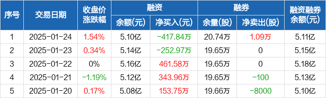 天地科技:融资净偿还417.84万元,融资余额5.1亿元(01-24)