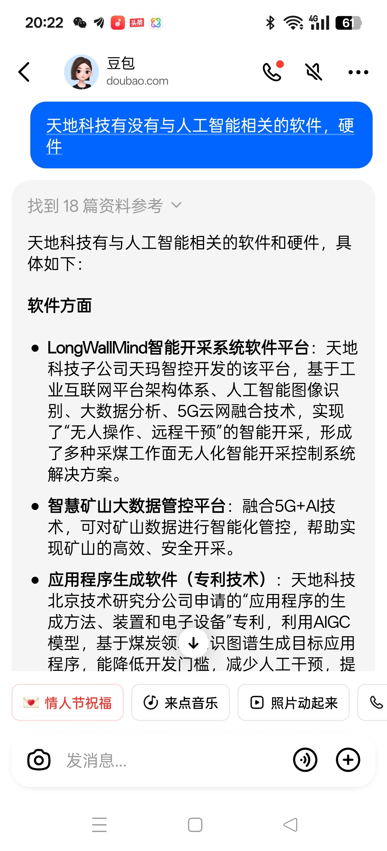 刚才在豆包上搜了搜天地科技有没有与人工智能相关的软件,硬件。。结果是真的有。这下