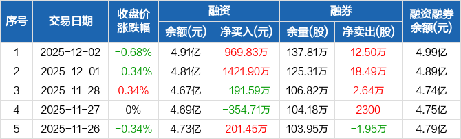 天地科技:融资净买入969.83万元,融资余额4.91亿元(12-02)